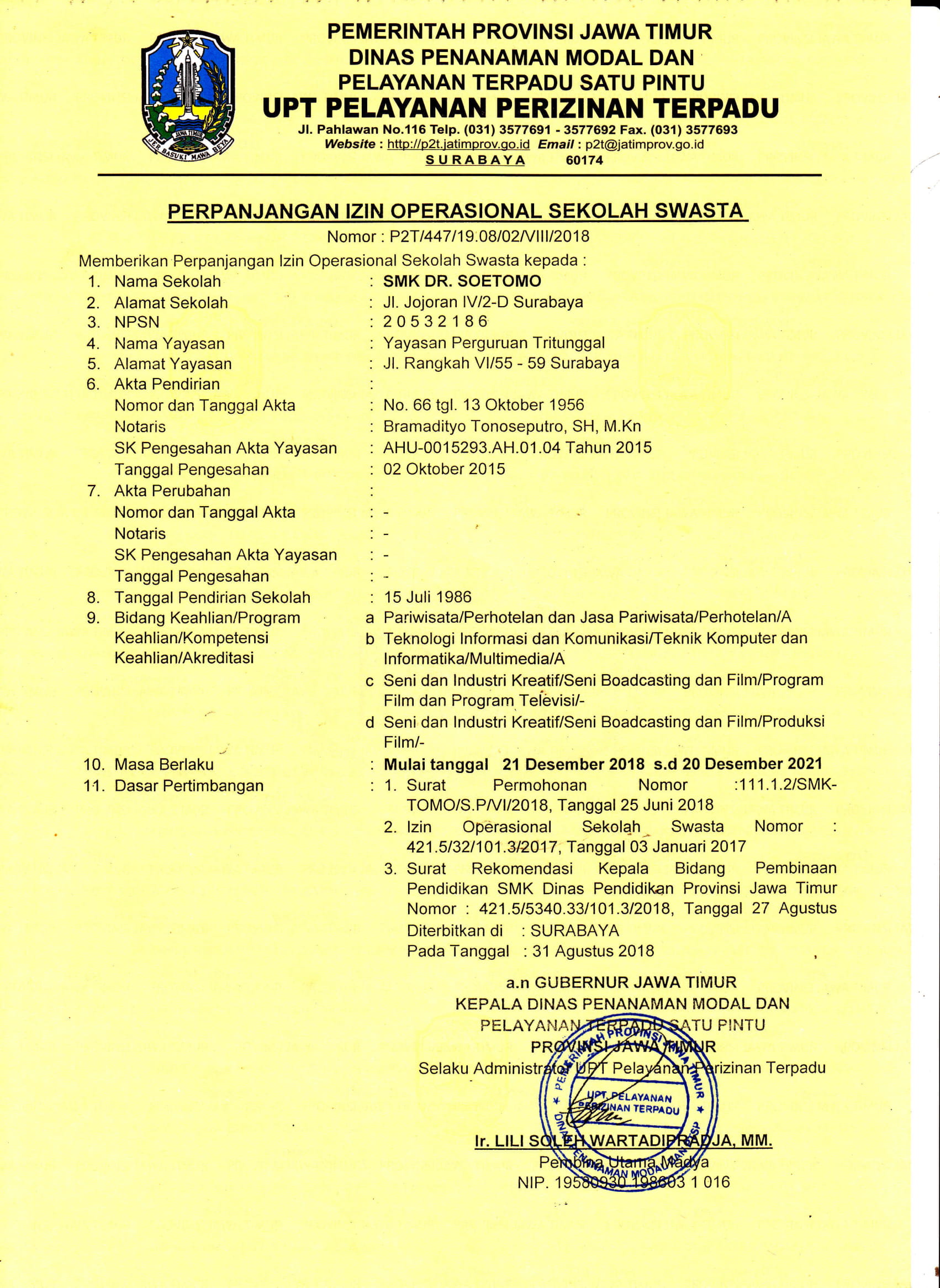 Tahun | Pembina | Program Vokasi |