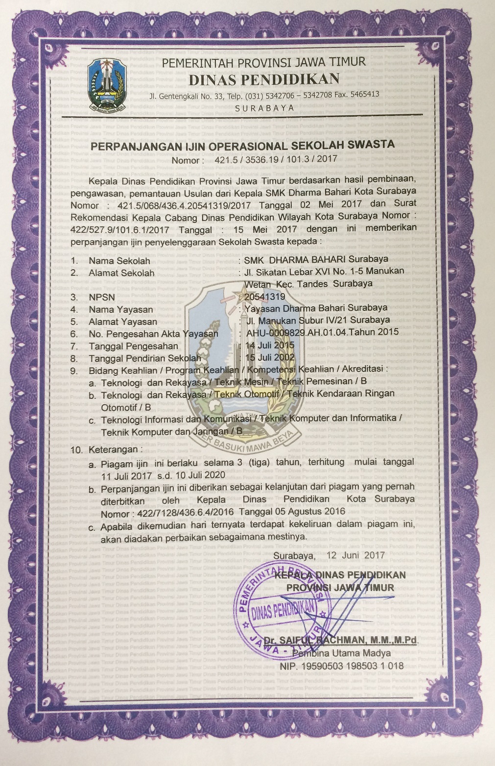 Tahun | Pembina | Program Vokasi |